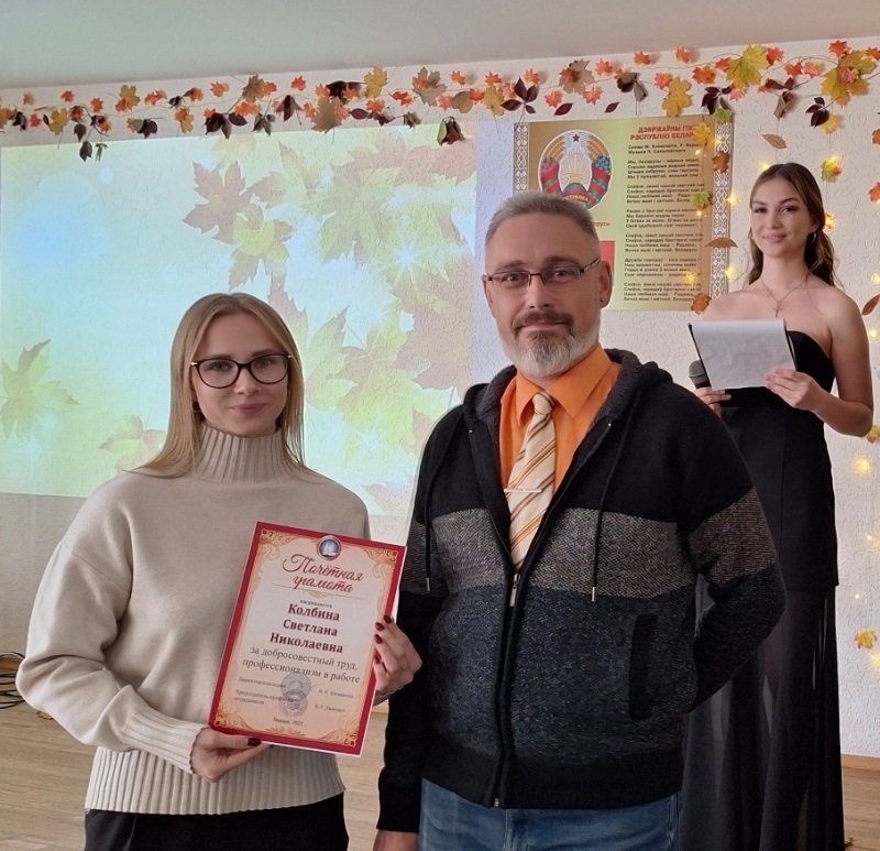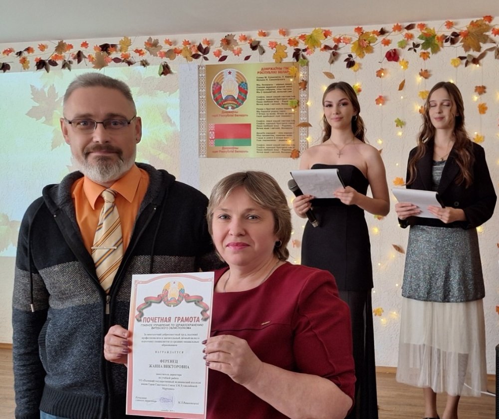 Администрация колледжа поздравила трудовой коллектив и вручила награды за добросовестный труд в системе образования, высокий профессионализм и значительный вклад в подготовку специалистов со средним специальным образованием: Благодарность председателя Полоцкого районного исполнительного комитета – преподавателю Фроловой Т.Э., Почётные грамоты Главного управления по здравоохранению Витебского областного исполнительного комитета – заместителю директора по учебной работе Ференец Ж.В. и лаборанту Боротынской Н.С., Почётные грамоты учреждения образования «Полоцкий государственный медицинский колледж имени Героя Советского Союза З.М. Туснолобовой-Марченко» – педагогу-психологу, педагогу социальному Колбиной С.Н. и секретарю Мороз С.В.