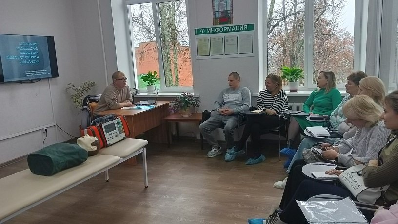 Практические занятия медицинских работников проводил заведующий отделением скорой медицинской помощи Россонского, Верхнедвинского, Ушачского, Лепельского межрайонного центра скорой медицинской помощи «Полоцк» ГУЗ «ВОЦСМП» Мышлёнок Павел Васильевич по темам: «Первичный осмотр пострадавшего. Общие принципы оказания скорой (неотложной) помощи», «Шок. Классификация шока, патофизиология. Принципы оказания медицинской помощи пациентам в состоянии шока», «ИВЛ: показания, тактика проведения», «Методика проведения пункционной коникотомии пациентам детского возраста» и др.