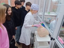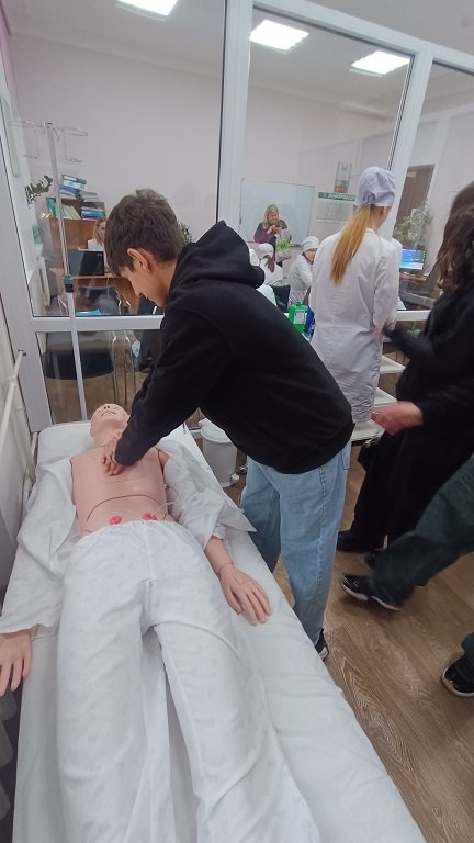 Учащиеся-волонтёры группы СД-3 сопровождали школьников по маршрутам, которые включали в себя 7 «станций», 6 из которых оборудованы на базе лаборатории по отработке навыков. На «станциях» учащиеся-тьюторы групп СД-3, 4ЛД продемонстрировали школьникам симуляционное оборудование модулей лаборатории и показали на нём технику выполнения манипуляций согласно модулям лаборатории. Каждый желающий учащийся, под руководством учащихся-тьюторов, попробовал себя в роли «медика». Школьники остались довольны организацией и проведением Дня открытых дверей, некоторые из них высказали желание получить профессию медицинского работника в стенах нашего колледжа.