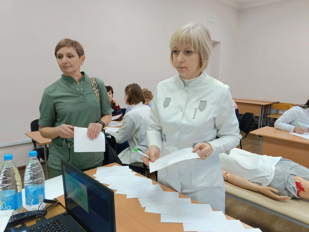 Экзамен проводился в устной форме и содержал теоретические вопросы, а также демонстрацию освоенных практических навыков (с элементами объективного структурированного клинического экзамена (ОСКЭ)), необходимых для выполнения нового вида профессиональной деятельности, в том числе с использованием симуляционного оборудования.