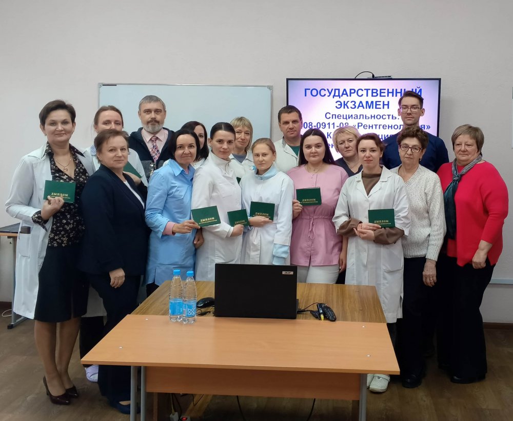 Во время экзамена комиссия отметила высокий уровень подготовки слушателей, практическую направленность, умение достаточно полно изложить полученные теоретические знания в области современной рентгенологической диагностики. Сами слушатели показали себя грамотными и сложившимися специалистами, способными применить полученные теоретические знания и практические навыки на рабочих местах в организациях здравоохранения нашей страны. Мы искренне благодарим преподавательский состав наших партнеров – врачей-рентгенологов ГУЗ «Полоцкая ЦГБ» и УЗ «Новополоцкая ЦГБ», а также Сысоеву Наталью Ивановну – заведующего рентгеновским кабинетом Полоцкой городской больницы №1 (председателя государственной экзаменационной комиссии) за непосредственное участие в образовательном процессе и подготовке будущих профессионалов.