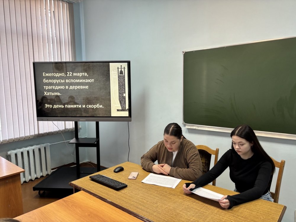 19 марта 2026 года в учебных группах прошли кураторские часы, посвящённые 83-й годовщине трагедии в Хатыни. Такие единые уроки памяти помогают учащимся осмыслить трагедию нашего народа во время Великой Отечественной войны и недопущение возрождения нацизма, как это произошло в соседних странах. Каждый третий белорус отдал свою жизнь, чтобы мы могли сегодня жить под мирным небом. Современная молодёжь, которая не знает лишений и бед, должна сохранять историческую память и не допустить войн на своей земле!