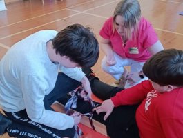 Также на базе колледжа прошли занятия для 19 учащихся УО "Полоцкая государственная гимназия 2" и 26 учащихся ГУО "Средняя школа 8 г.Полоцка" (всего 45 человек). Обучали школьников преподаватели колледжа Астановка М.А., Коновалова Н.О, Ретинская Е.С., Топырик А.Г., Лапковская Т.Е. и учащиеся выпускной группы 3СД. Благодаря их активной, вдохновляющей работе 98 школьников научились выполнять алгоритмы оказания первой помощи для спасения жизни человека при угрожающих состояниях.