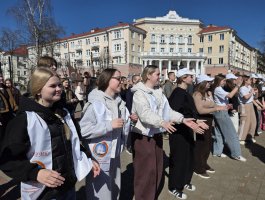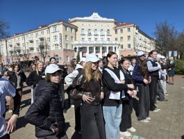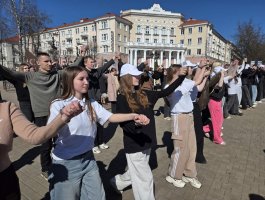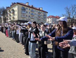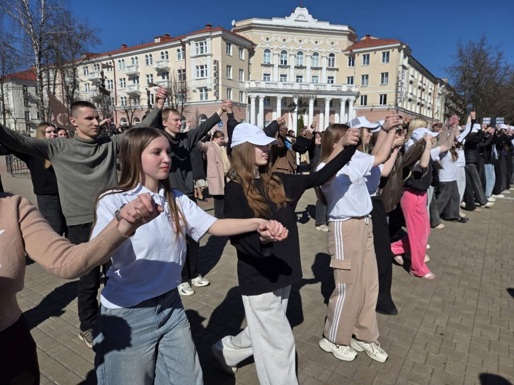 02.04.2026 на проспекте Франциска Скорины учащиеся 1-2-ых курсов - активисты первичной организации ОО «БРСМ» приняли активное участие в ярком флешмобе, приуроченном ко Дню единения народов Беларуси и России.