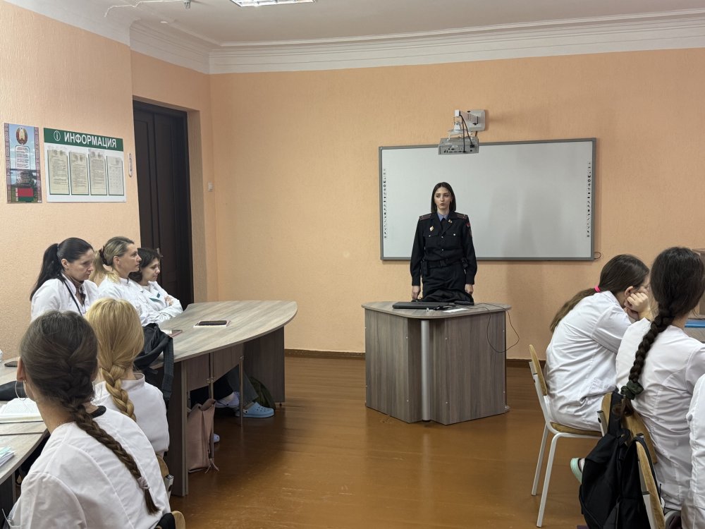 28.01.2026г. в рамках «Недели кибербезопасности», учащихся группы 2ЛД посетила участковый инспектор ИДН Полоцкого РОВД Джуравец Д.Н. с актуальной темой «Как не стать жертвой преступления». В своём выступлении Дарья Николаевна рассказала учащимся об основных преступлениях, совершаемых в сети Интернет и по мобильному телефону, а также напомнила об ответственности за совершение правонарушений и преступлений.