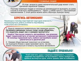 - Передвигайтесь осторожно, не торопясь, наступая на всю подошву. При этом ноги должны быть слегка расслаблены, руки свободны. Пожилым людям рекомендуется использовать трость с резиновым наконечником или специальную палку с заострёнными шипами. Если Вы подскользнулись, присядьте, чтобы снизить высоту падения. В момент падения постарайтесь