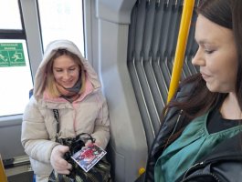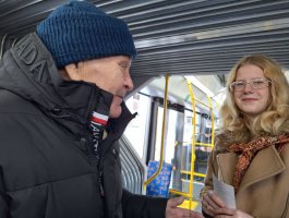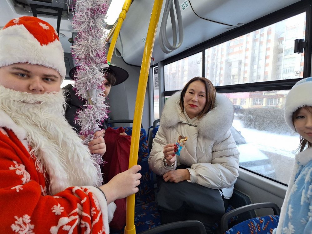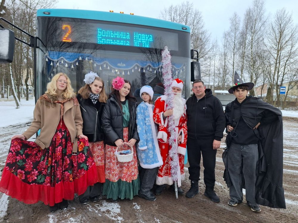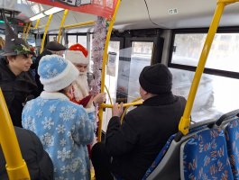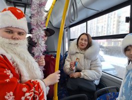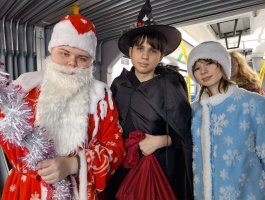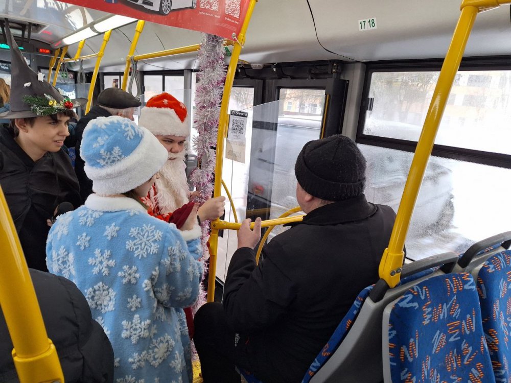 30 декабря на маршруте №2 к горожанам пришли Дед Мороз – Татарис Алексей (группа СД-2-2) и Снегурочка – Столярова Тамара (группа СД-2-2). Они вместе со своими одногруппниками: Шорец Анной, Ракитской Ксенией, Ющенко Антоном, а также учащимися группы СД-3 Кондратьевой Дарьей и Котовой Надеждой разыграли перед пассажирами настоящее новогоднее представление с Дедом Морозом, Снегурочкой, цыганами и добрым волшебником. Звучали песни, взрослые и дети рассказывали стихи, а цыганки гадали, предсказывая всем успех и удачу в 2026 году! Самым активным пассажирам вручались сладкие призы и праздничные открытки с пожеланиями. Все пассажиры «Новогоднего экспресса» получили заряд новогодней бодрости и хорошего настроения!!!