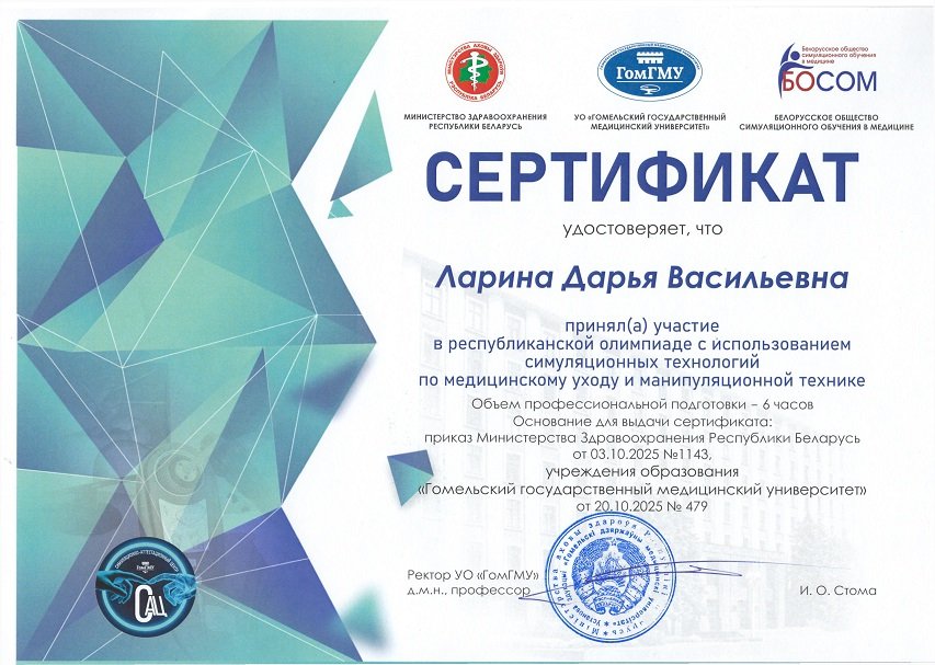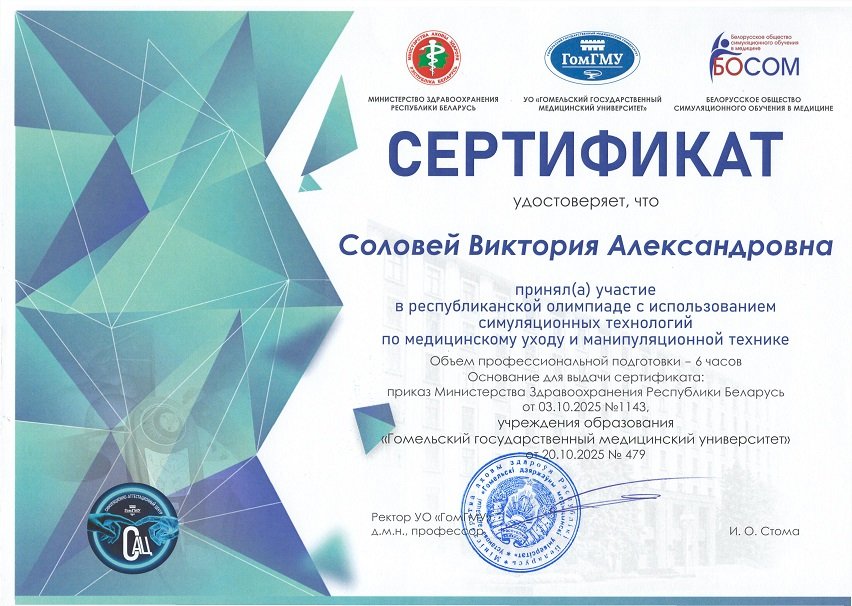 29.10.2025 на базе учреждения образования «Гомельский государственный медицинский университет» был проведён практический тур заключительного этапа Республиканской олимпиады студентов медицинских университетов и учащихся медицинских колледжей с использованием симуляционных технологий по медицинскому уходу и манипуляционной технике.