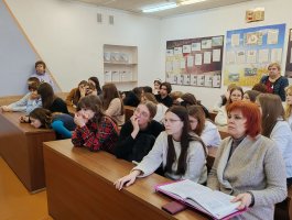 Преподаватель колледжа Топырик А.Г. рассказала школьникам об истории колледжа, о специальностях подготовки: «Сестринское дело», «Лечебное дело» и сроках обучения, условиях поступления и проходных баллах 2025 года, о возможности целевой подготовки и распределения по месту проживания.