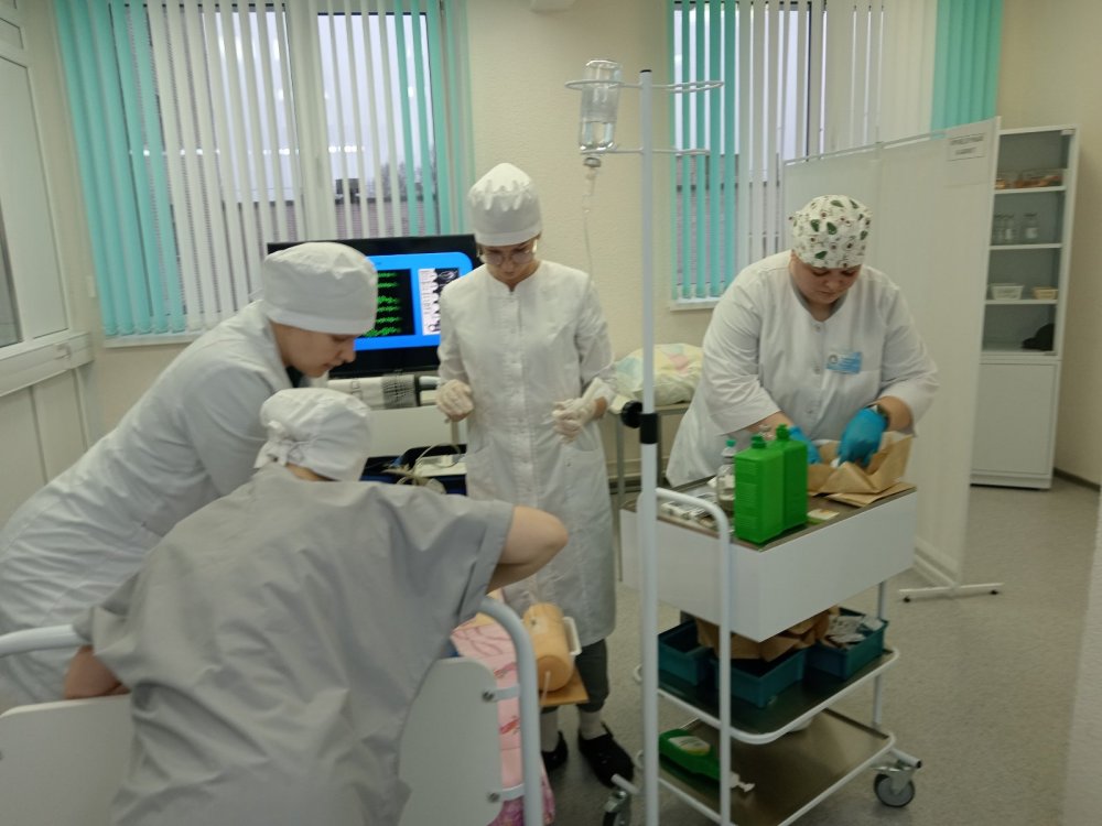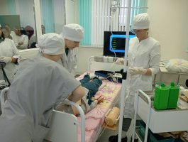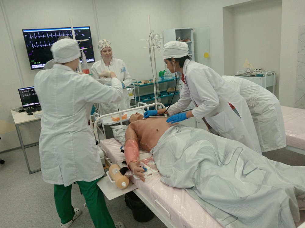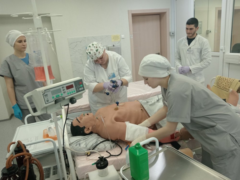 Учащиеся отрабатывали командные тренинги совместной работы со студентами 4-го курса ВГМУ при оказании неотложной медицинской помощи пациентам по темам: «Гиповолемический шок (в палате интенсивной терапии)», «Внезапная смерть в учреждении здравоохранения».