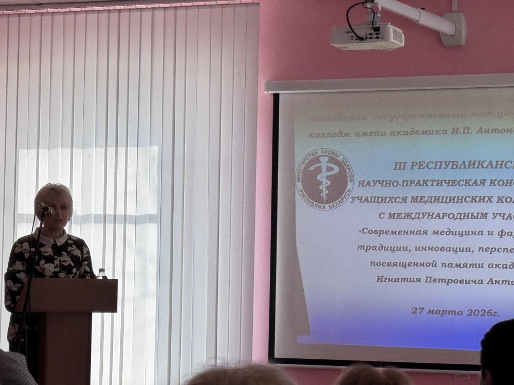 27 марта 2026 г. на базе учреждения образования «Витебский государственный медицинский колледж имени академика И.П. Антонова» состоялась III Республиканская научно-практическая конференция с международным участием «Современная медицина и фармация: традиции, инновации, перспективы», посвящённая памяти академика И.П. Антонова, объединившая учащихся и преподавателей медицинских учреждений образования Беларуси, России, Казахстана и Узбекистана.