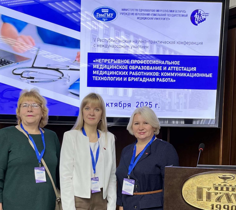 10.10.2025 руководитель практики Дубовская Ж.Г. и главные медицинские сёстры УЗ «Новополоцкая центральная городская больница» Славинскоя О.А. и ГУЗ «Полоцкая центральная городская больница» Королькова Н.М. приняли участие в V республиканской научно-практической конференции с международным участием «Непрерывное профессиональное медицинское образование и аттестация медицинских работников: коммуникационные технологии и бригадная работа», которая проходила на базе учреждения образования «Гомельский государственный медицинский университет».