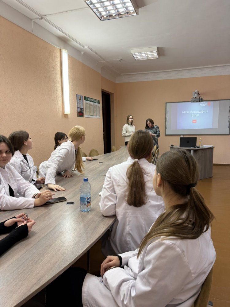 01.12.2025 года на базе центральной городской поликлиники ГУЗ «Полоцкая ЦГБ» прошла профилактическая акция «Стоп – СПИД!». Участники инициативной группы «Эверест», учащиеся группы 3ЛД Клопова Екатерина и Панкова Вероника совместно с главным специалистом Полоцкого РК ОО «БРСМ» Рамза Марией раздавали информационные листовки по профилактике ВИЧ-инфекции посетителям поликлиники.