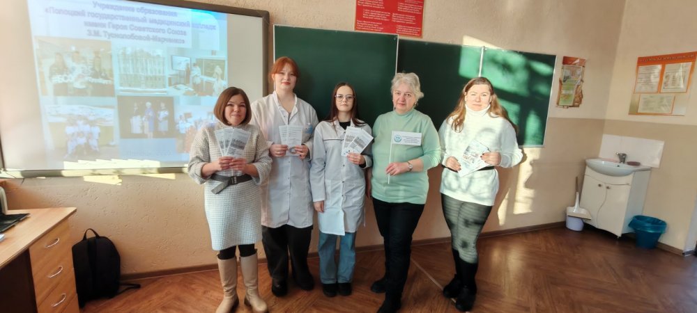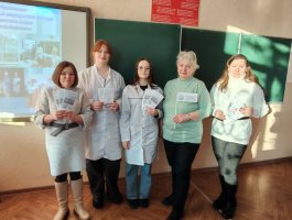 Анна Георгиевна подробно рассказала о колледже, специальностях подготовки и организации обучения в колледже, о поступлении в колледж на условиях целевой подготовки и проходных баллах в 2025 году. Ульяна поделилась со школьниками информацией о том, как состоялся её выбор профессии, как проходит учёба в колледже и организован досуг, а также своими впечатлениями о прохождении учебной практики на базе организаций здравоохранения.