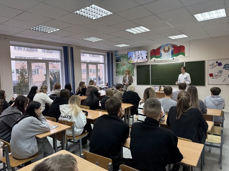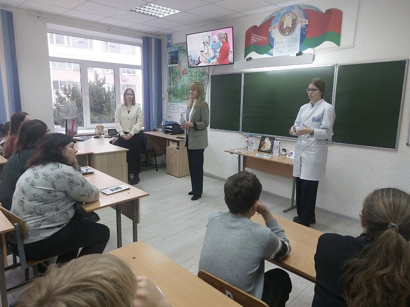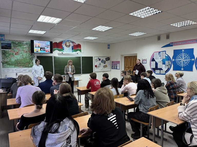 Светлана Николаевна подробно рассказала о колледже, специальностях подготовки и организации обучения в колледже, о поступлении в колледж на условиях целевой подготовки и проходных баллах в 2025 году. Ксения поделилась со школьниками информацией о том, как состоялся её выбор профессии, как проходит учёба в колледже и организован досуг, а также своими впечатлениями о прохождении учебной практики на базе организаций здравоохранения.