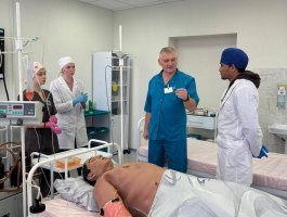 На тренажёрах симуляционно-аттестационного центра ВГМУ учащиеся колледжа совместно со студентами 4 курса медуниверситета под руководством преподавателей университета Редненко В.В. и Редненко Л.И. отработали алгоритмы оказания неотложной медицинской помощи пациентам в условиях, имитирующих приёмное отделение стационара, по темам: «Гиповолемический шок», «Внезапная смерть в учреждении здравоохранения».