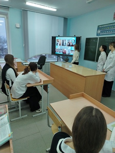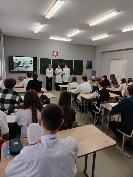 Ответственный секретарь приёмной комиссии колледжа Колбина С.Н. рассказала школьникам об истории колледжа, о специальностях подготовки: «Сестринское дело», «Лечебное дело» и сроках обучения, условиях поступления и проходных балах 2025 года, о перспективах профессионального развития для медицинских работников среднего звена и возможности целевой подготовки и распределения по месту проживания.