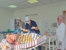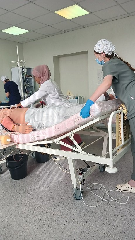 Учащиеся отрабатывали командные тренинги совместной работы со студентами 4-го курса ВГМУ при оказании неотложной медицинской помощи пациентам по теме «Гиповолемический шок». Затем в лаборатории, имитирующей отделение стационара, на симуляционных тренажёрах, они отработали алгоритмы расширенной реанимации по теме «Внезапная смерть в учреждении здравоохранения».