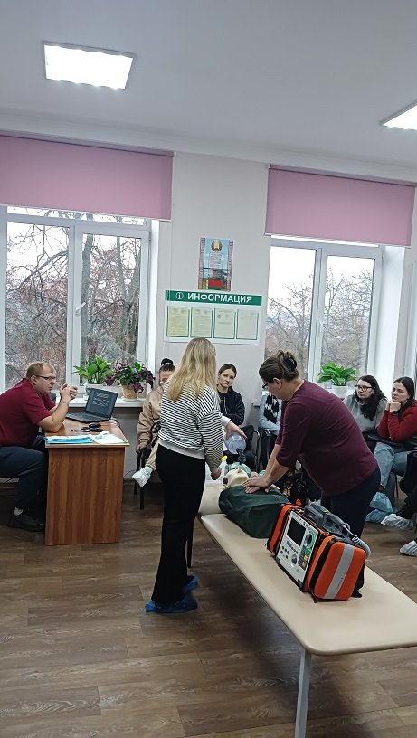 20.11.2025 на базе лаборатории по отработке навыков в рамках проведения практических занятий состоялись совместные тренинги для слушателей курсов повышения квалификации «Скорая медицинская помощь» и «Организация работы медицинской сестры операционной» по теме «Проведение расширенной сердечно-лёгочной реанимации». Тренинги провёл заведующий отделением скорой медицинской помощи Россонского, Верхнедвинского, Ушачского, Лепельского межрайонного центра скорой медицинской помощи «Полоцк» ГУЗ «ВОЦСМП» Мышлёнок Павел Васильевич, преподаватель.