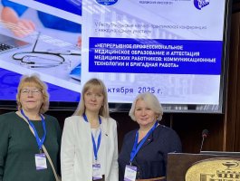 10.10.2025 руководитель практики Дубовская Ж.Г. и главные медицинские сёстры УЗ «Новополоцкая центральная городская больница» Славинскоя О.А. и ГУЗ «Полоцкая центральная городская больница» Королькова Н.М. приняли участие в V республиканской научно-практической конференции с международным участием «Непрерывное профессиональное медицинское образование и аттестация медицинских работников: коммуникационные технологии и бригадная работа», которая проходила на базе учреждения образования «Гомельский государственный медицинский университет».