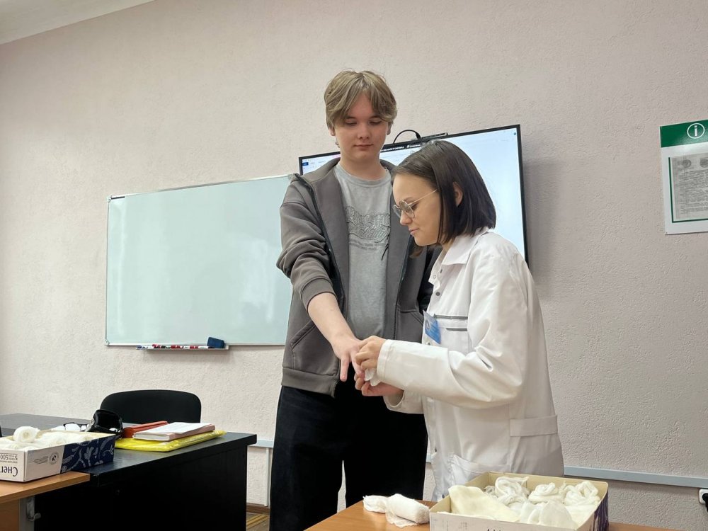 Члены кружка, под руководством преподавателей Астановка М.А. и Войченко А.В., не только ознакомились с основными направлениями работы медицинской сестры (медицинского брата) отделения хирургического профиля стационара и узнали, какие мягкие бинтовые повязки предназначены на разные части тела, но и смогли отработать технику наложения повязок друг на друге под руководством учащихся группы 3СД.