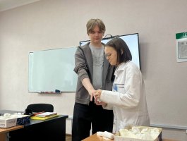 21.03.2026г. на базе лаборатории по отработке навыков колледжа проведены очередные занятия профориентационного кружка «Будущие медики» по теме «Организация медицинского наблюдения и ухода за пациентами хирургического профиля».