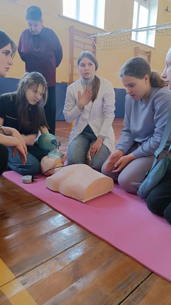 18.04.2026 прошло очередное занятие профориентационного кружка «Будущие медики» для учащихся 7-х-11-х классов учреждений образования «Государственная гимназия №2 г. Полоцка», «Базовая школа №10 г. Новополоцка» по разделу «Принципы оказания первой помощи». Занятие прошло в рамках обучающего проекта «Запусти сердце».