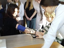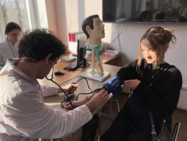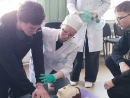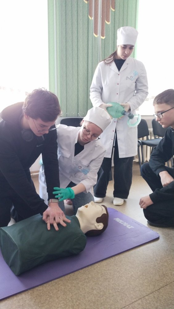 Учащихся встречали волонтёры колледжа – учащиеся группы 2ЛД. Гостей приветствовала руководитель практики колледжа Дубовская Ж.Г., которая ознакомила гостей с историей колледжа, особенностями организации образовательного процесса, озвучила школьникам условия поступления в колледж. На встрече также присутствовала главная медицинская сестра УЗ «Новополоцкая центральная городская больница» Славинская О.А., которая рассказала о структуре и организации УЗ «НЦГБ» и перспективах профессионального развития для медицинских работников среднего звена. Далее учащиеся-волонтёры провели школьников по интересным маршрутам. Будущие абитуриенты побывали на станции «Анатомия», «Стенд абитуриенту» и станциях на базе лаборатории по отработке навыков, где каждый из гостей пообщался с учащимися колледжа групп 3СД, СД-3, которые продемонстрировали выполнение основных практических навыков по уходу за пациентами, некоторых медицинских процедур и алгоритм проведения базовой сердечно-лёгочной реанимации, и преподавателями. После этого гости поучаствовали в мастер-классах, где попробовали себя в роли «медицинского работника». Школьники остались довольны организацией и проведением Дня открытых дверей.