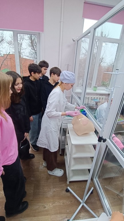 Учащиеся-волонтёры группы СД-3 сопровождали школьников по маршрутам, которые включали в себя 7 «станций», 6 из которых оборудованы на базе лаборатории по отработке навыков. На «станциях» учащиеся-тьюторы групп СД-3, 4ЛД продемонстрировали школьникам симуляционное оборудование модулей лаборатории и показали на нём технику выполнения манипуляций согласно модулям лаборатории. Каждый желающий учащийся, под руководством учащихся-тьюторов, попробовал себя в роли «медика». Школьники остались довольны организацией и проведением Дня открытых дверей, некоторые из них высказали желание получить профессию медицинского работника в стенах нашего колледжа.