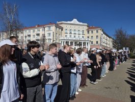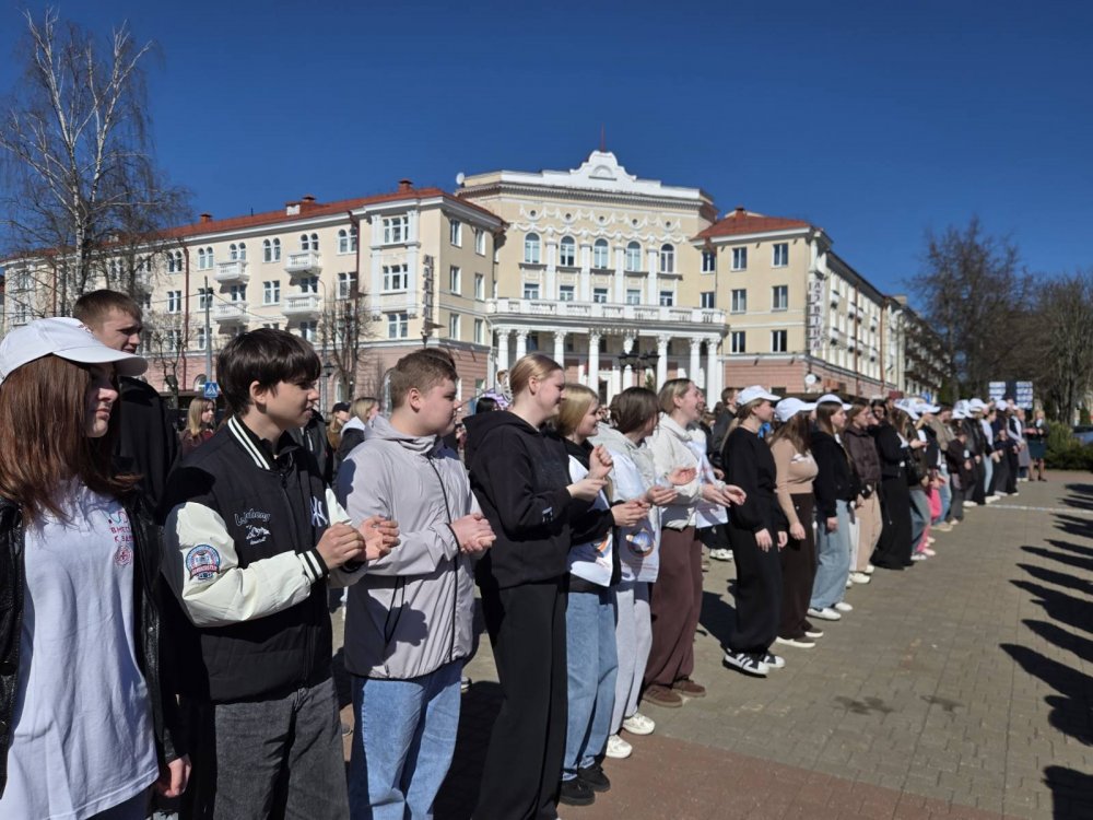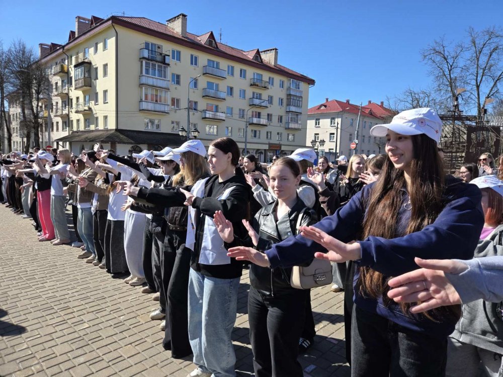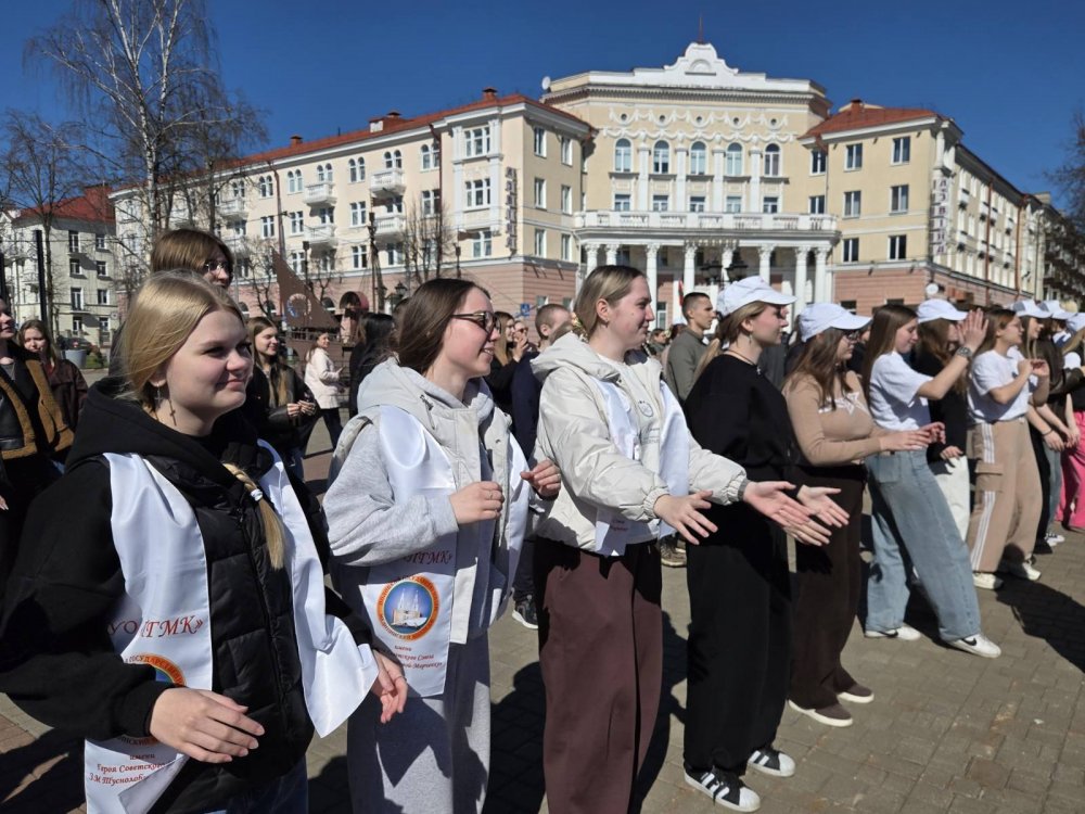 02.04.2026 на проспекте Франциска Скорины учащиеся 1-2-ых курсов - активисты первичной организации ОО «БРСМ» приняли активное участие в ярком флешмобе, приуроченном ко Дню единения народов Беларуси и России.