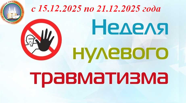 В период с 15 декабря по 21 декабря 2025 г. для обеспечения безопасности и здоровья работников на рабочих местах, и чтобы минимизировать риски травматизма, возникающие из-за неустойчивой зимней погоды, гололёда, снега и наледи на пешеходных зонах и подъездных путях в колледже проводится мероприятие «Неделя нулевого травматизма».