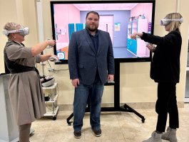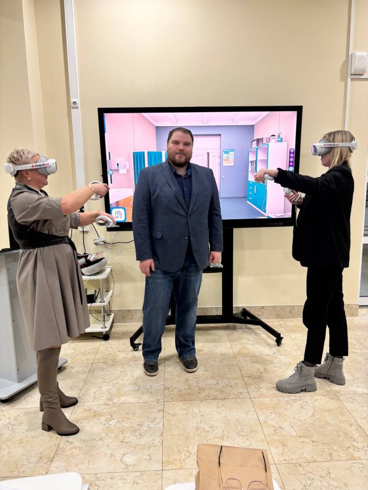 Представитель ООО «Медвиар» Флоренский Е. А. провёл занятие для педагогических работников и студентов на высокореалистичных симуляторах медицинской клиники, палат ОРИТ с командным взаимодействием, неотложной медицинской помощи, сестринского дела, реализуемых с помощью технологий виртуальной реальности XR (расширенная реальность), которая позволяет погрузить человека в виртуальное окружение. В конце занятия участники семинара поделились своими впечатлениями, и отметили, что использование данной технологии в образовательном процессе является безусловно перспективным. Высокореалистичное моделирование по наиболее распространённым или сложным клиническим случаям помогает обучающимся повысить уровень подготовки и уверенности в своих действиях. После семинара директор Великолукского колледжа Шулаев Александр Анатольевич познакомил наших преподавателей с колледжем и достопримечательностями города.
