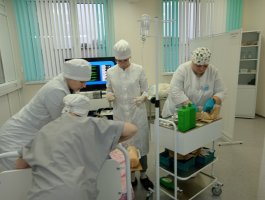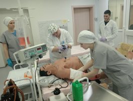 Учащиеся отрабатывали командные тренинги совместной работы со студентами 4-го курса ВГМУ при оказании неотложной медицинской помощи пациентам по темам: «Гиповолемический шок (в палате интенсивной терапии)», «Внезапная смерть в учреждении здравоохранения».