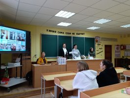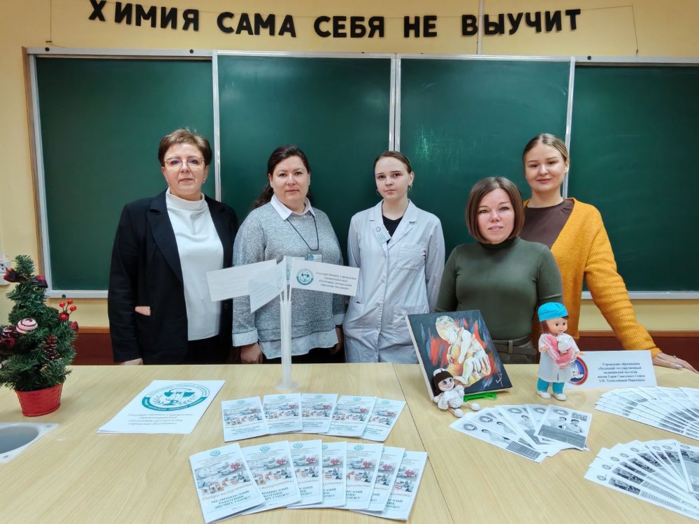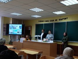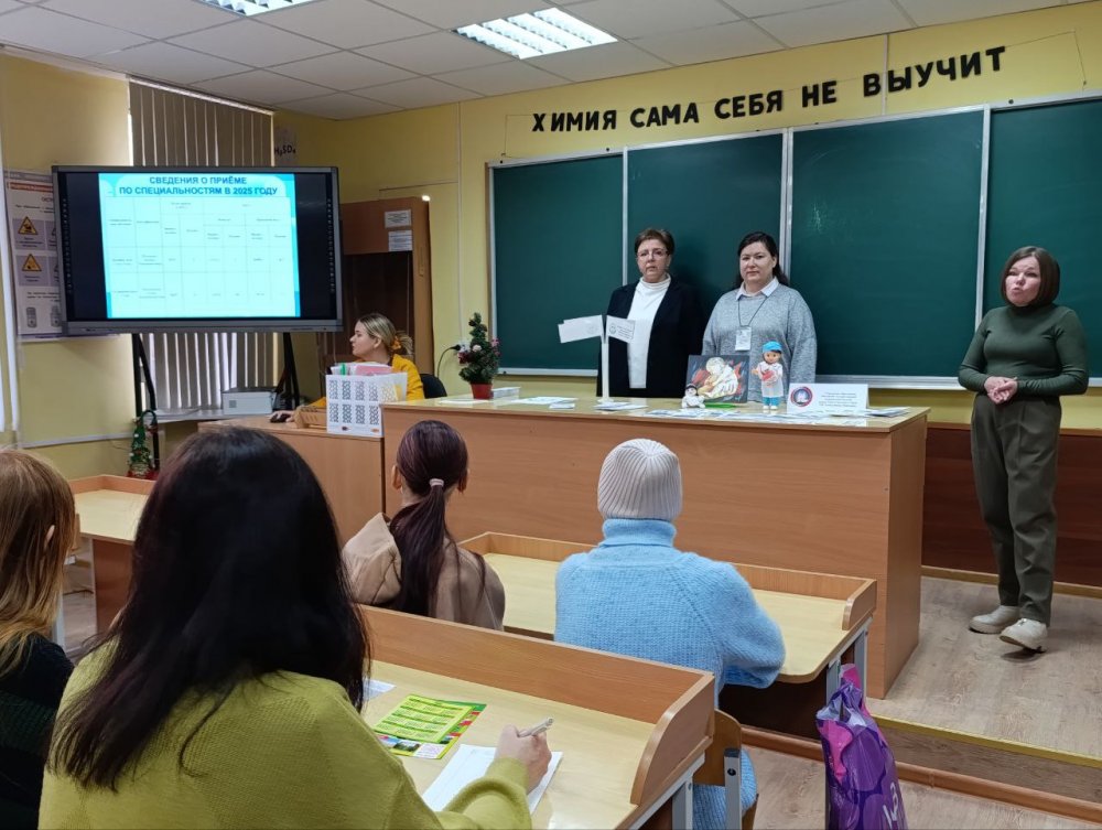Анна Георгиевна подробно рассказала о колледже, специальностях подготовки и организации обучения в колледже, о поступлении в колледж на условиях целевой подготовки и проходных баллах в 2025 году. Валерия поделилась со школьниками информацией о том, как состоялся её выбор профессии, как проходит учёба в колледже и организован досуг, а также своими впечатлениями о прохождении учебной практики на базе организаций здравоохранения.