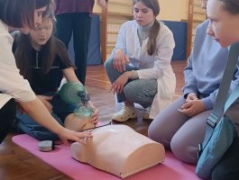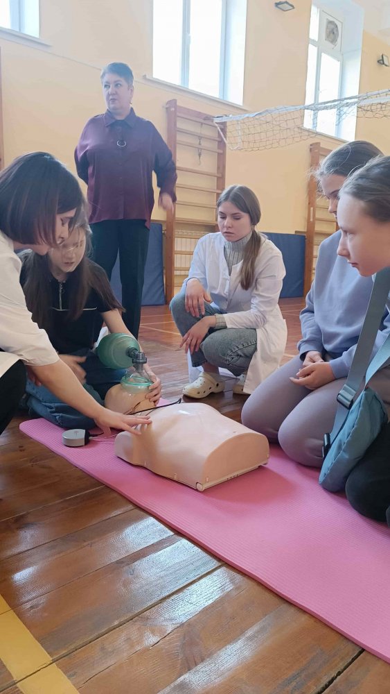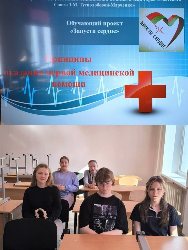 18.04.2026 прошло очередное занятие профориентационного кружка «Будущие медики» для учащихся 7-х-11-х классов учреждений образования «Государственная гимназия №2 г. Полоцка», «Базовая школа №10 г. Новополоцка» по разделу «Принципы оказания первой помощи». Занятие прошло в рамках обучающего проекта «Запусти сердце».